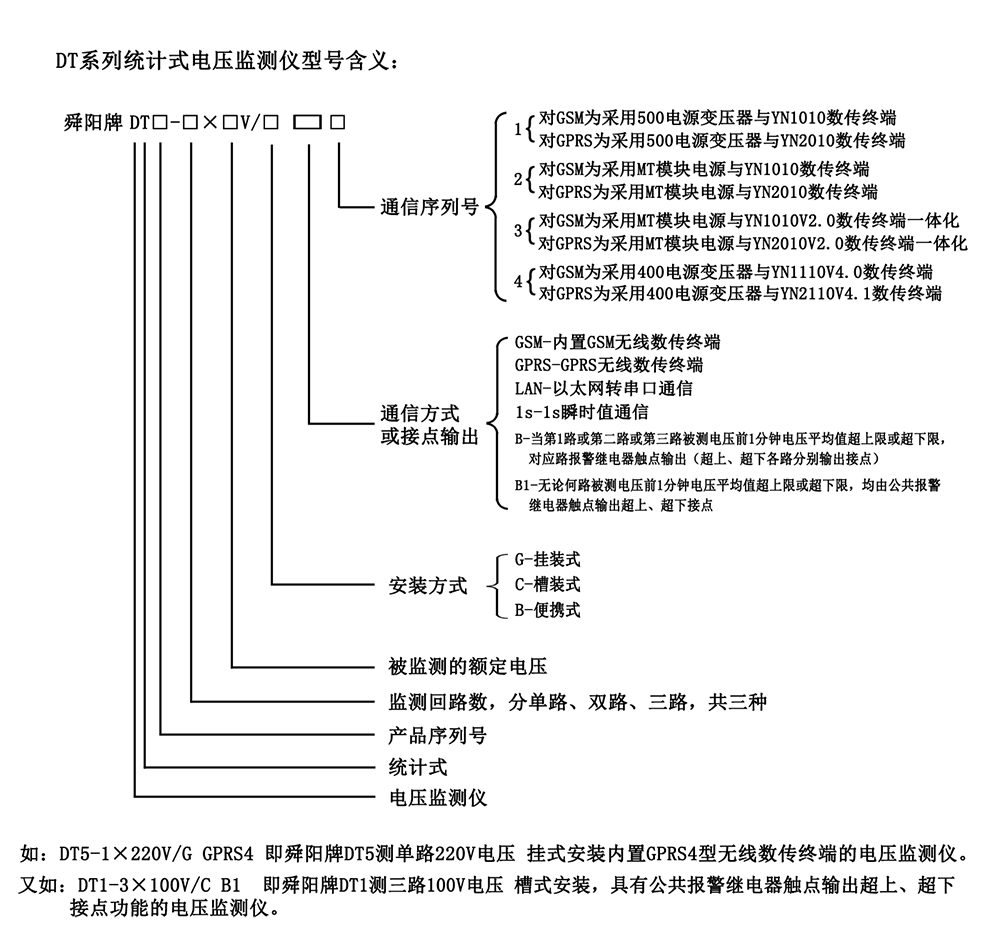 舜陽牌DT系列統(tǒng)計(jì)式電壓監(jiān)測(cè)儀型號(hào)含義