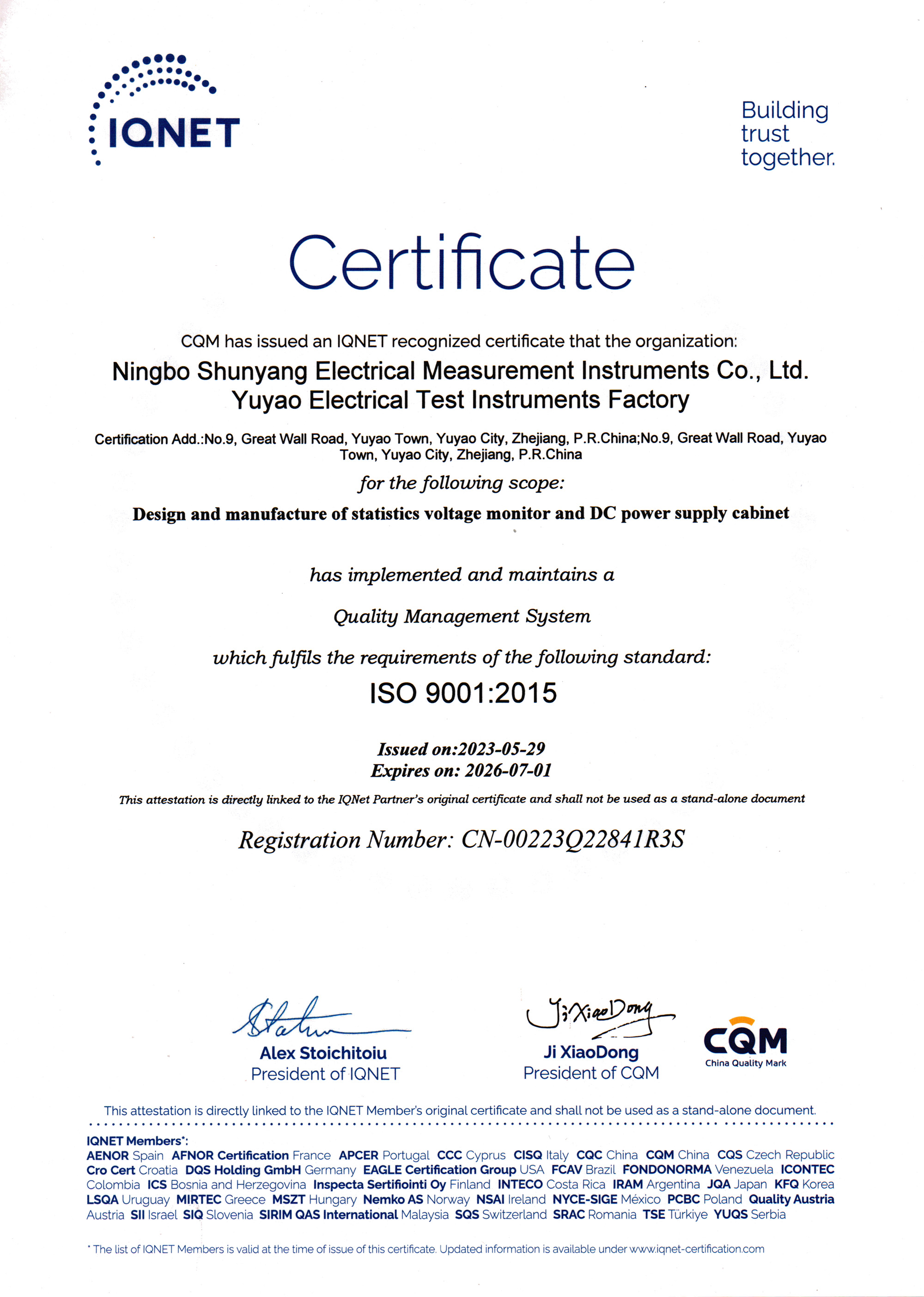 國(guó)際認(rèn)證聯(lián)盟(IQNet)證書